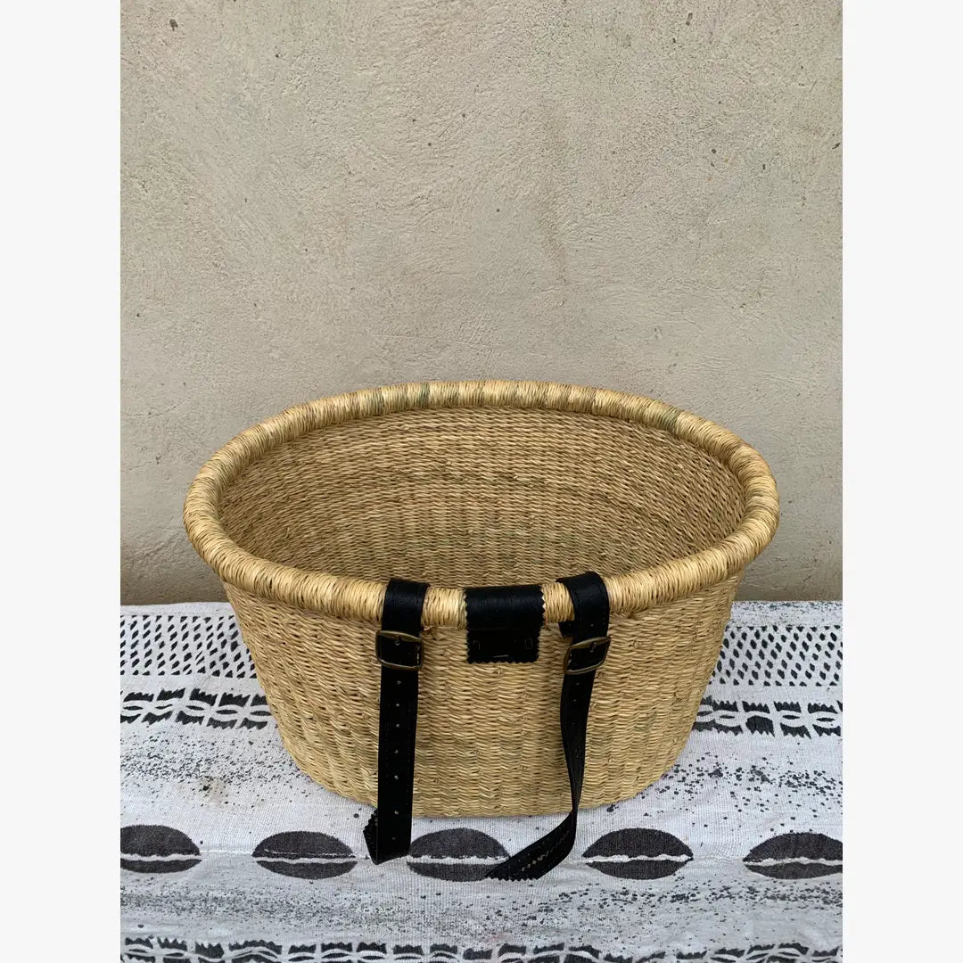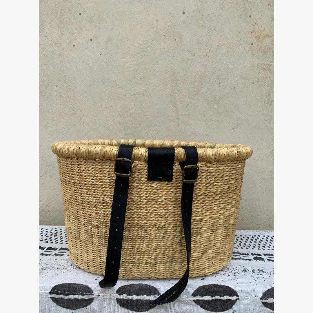 Add handmade charm and functional flair to your ride with this Bolga Bicycle Basket, skillfully woven by artisans in Bolgatanga, Ghana. Crafted from durable, sustainable elephant grass, this unique bike basket blends traditional African craftsmanship with modern convenience. Designed to easily attach to your bike handlebars, this handwoven basket is perfect for carrying your market finds, picnic goods, daily essentials, or even your small pet—with style and sustainability.